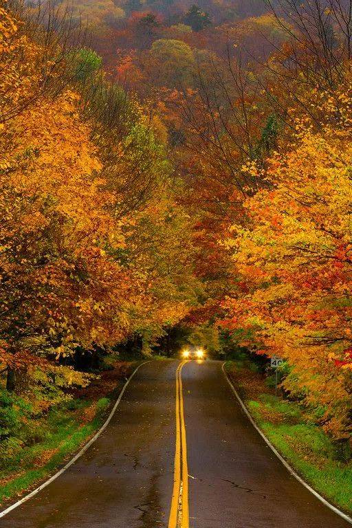 红色、黄色和绿色互相融合和映衬,使得这条普通的公路充满了最绚丽和最让人生神往的色彩。黄色这是秋天最典型的颜色,秋叶之美摄人心魄,让人心旷神怡。