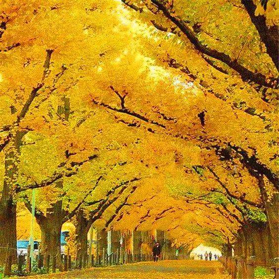 东京的街道两旁、花园和公园里生长着大约6.5万棵银杏树,座落于明治神宫的外苑的银杏树隧道就很值得一去。