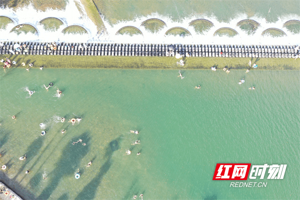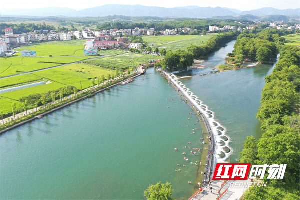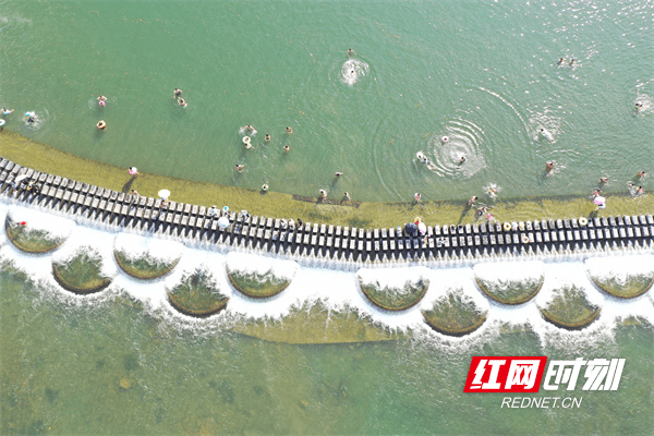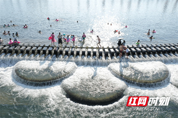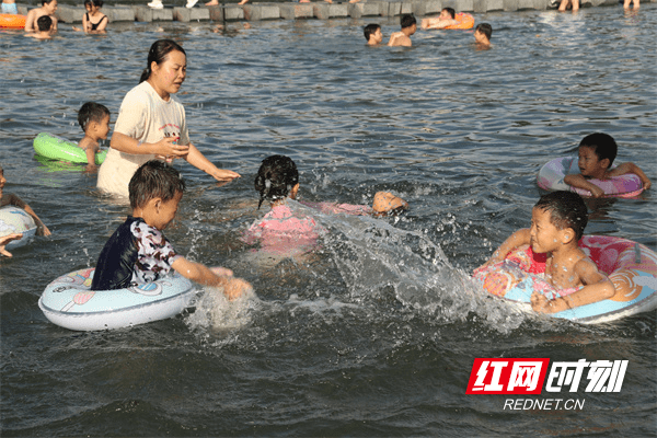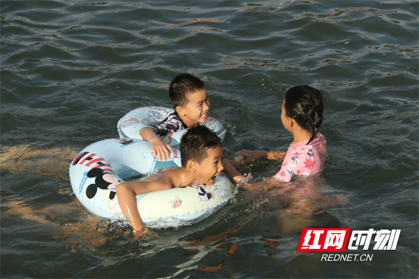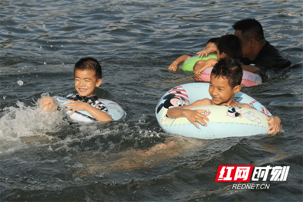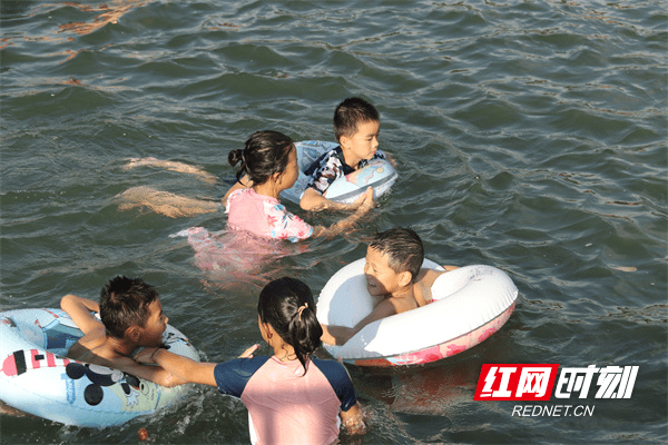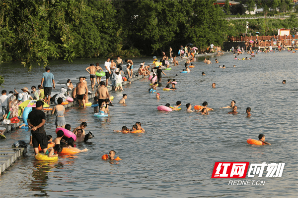 红网时刻新闻7月3日讯(通讯员 周凤连)7月2日,湖南道县梅花镇贵头村,游客在洑水河里休闲消暑享受清凉,小朋友在大人的看护下戏水游泳。近年来,道县坚持“绿水青山就是金山银山”理念,探索以生态优先、绿色发展为导向的高质量发展新路子,打好蓝天、碧水、净土三大保卫战,不断改善生态环境质量,推进生态文明建设,促进绿色产业发展,吸引游客旅游观光,带动百姓增收致富。