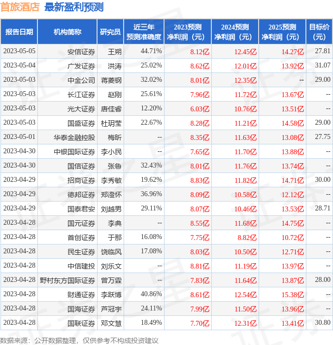 最新盈利预测明细如下: