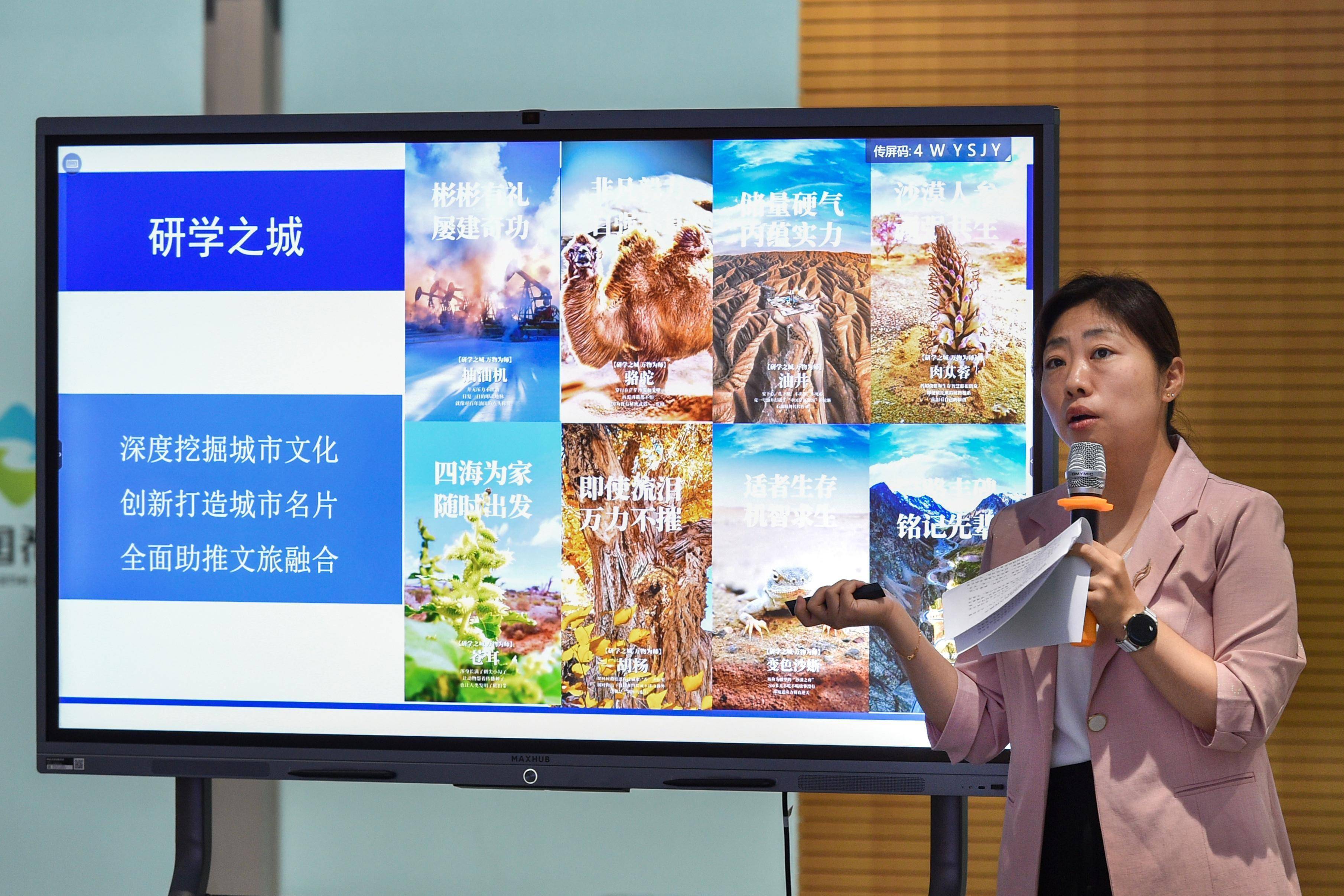 6月27日,在上海举行的上海-克拉玛依“引客入克”及两地航线推进会上,市文体旅游局相关负责人正在进行宣传推介。克拉玛依日报特派全媒体记者 胡雪婷 摄