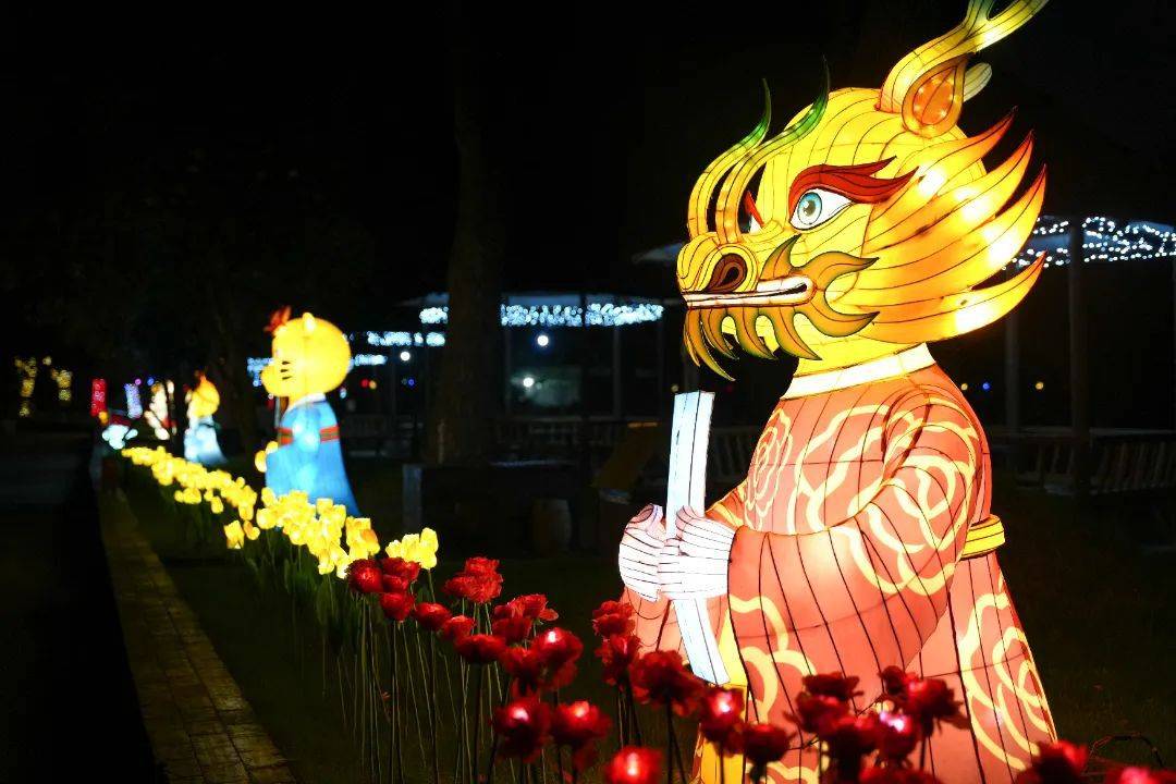 玫瑰、郁金香、麦穗,灯光花海已就位,将夜晚装扮得流光溢彩。游客信步其间,沉浸式感受充满梦幻的霓虹夜晚。