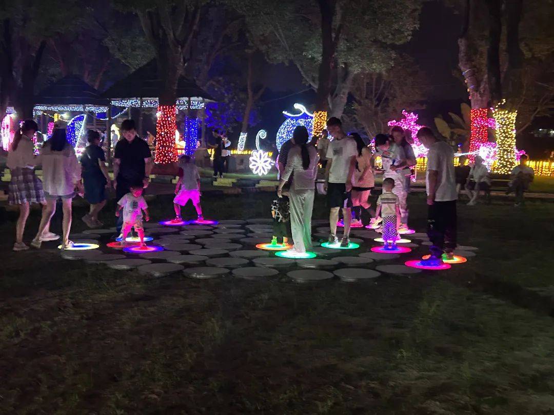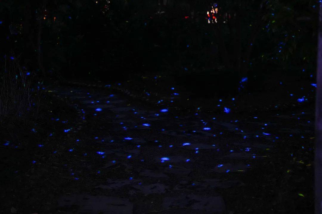 “萤火虫森林”里,星星点点的拟态萤火虫灯结伴飞舞,仿佛在低声诉说着森林里的童话,也为来客照亮了夜间小径。