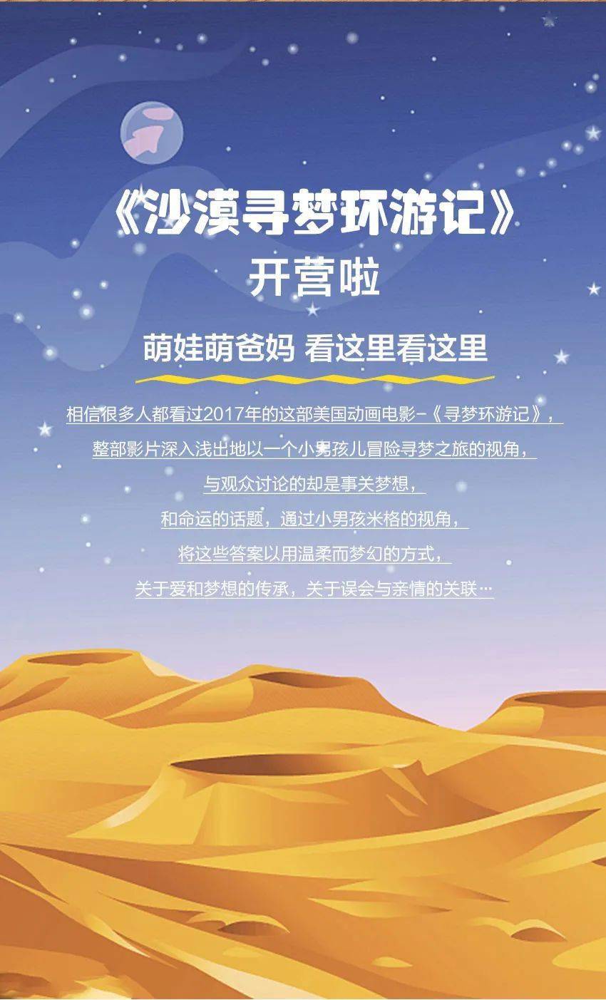 19:00在营地自由活动期间,大家在餐厅品尝特色蒙古族炒菜桌餐,还可以观赏大漠落日美景,拍摄红裙大片,交流一整天的心路历程,今日我们还会为大家播放经典温情动画电影《寻梦环游记》…今天还会给家长和孩子布置一个小任务,给对方写一封信,留到明天的篝火晚会时读给对方。