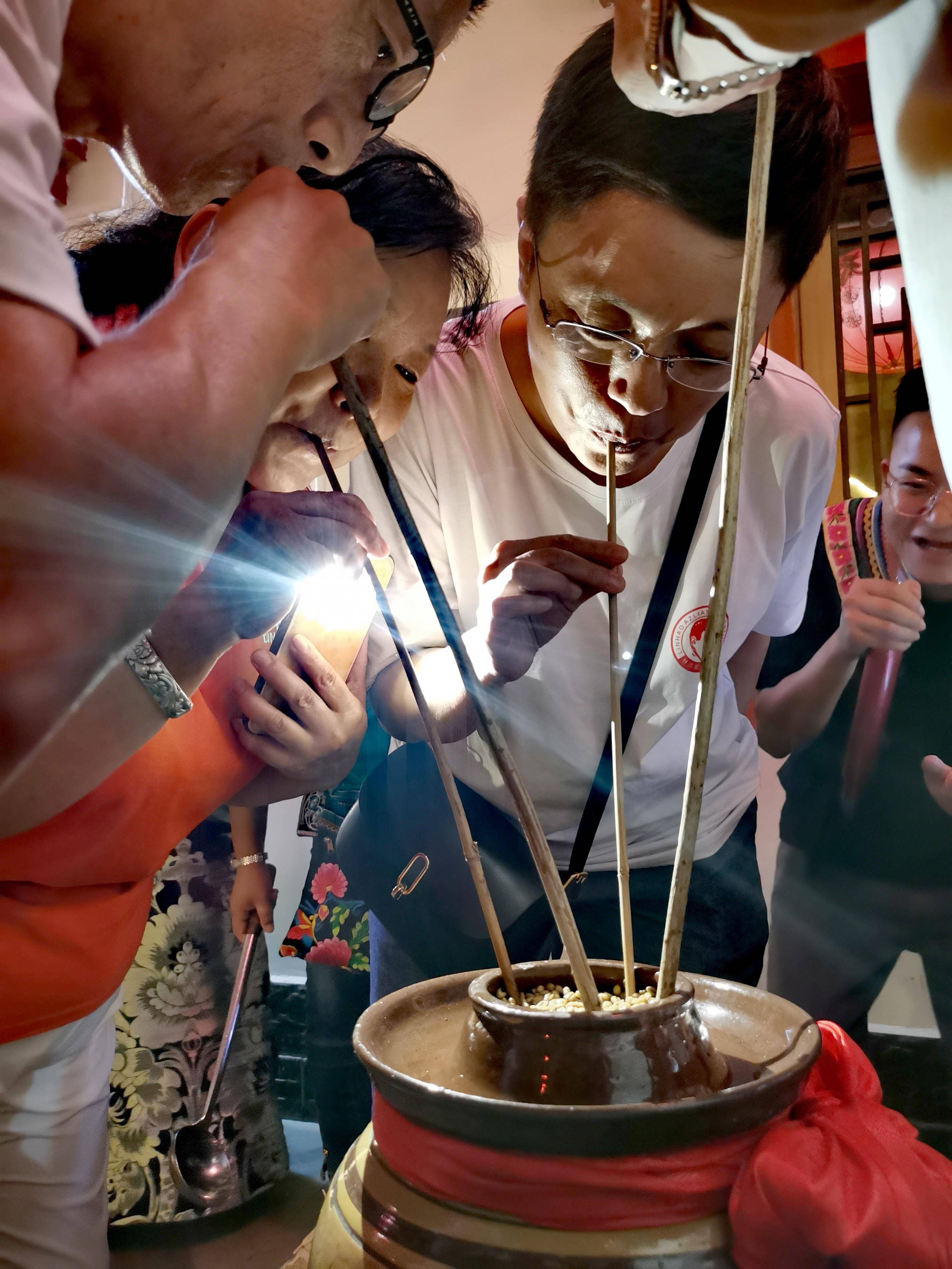 图:林浩为粉丝们主持喝咂酒挑战赛