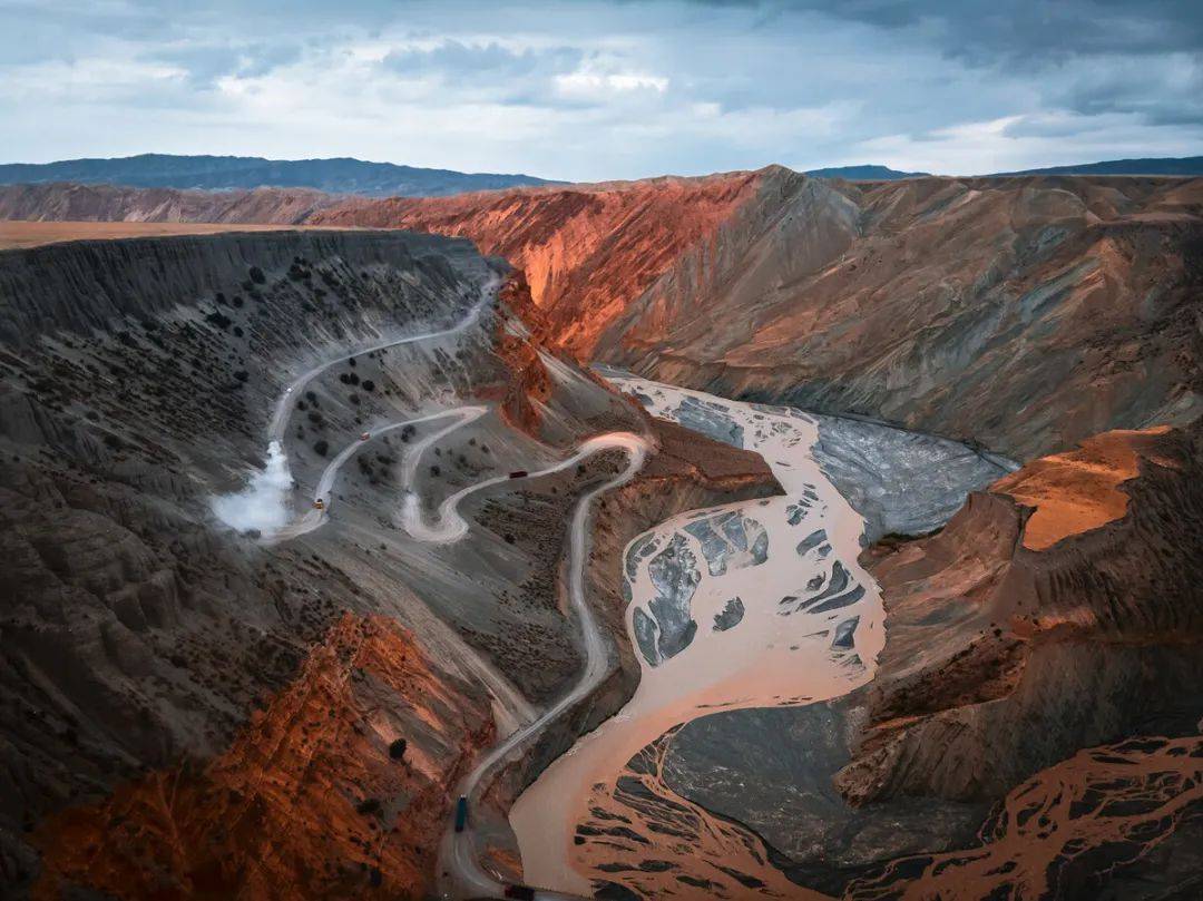 峡谷色彩瑰丽,阶地密布,站在万丈绝壁边,心底升起万丈波浪。