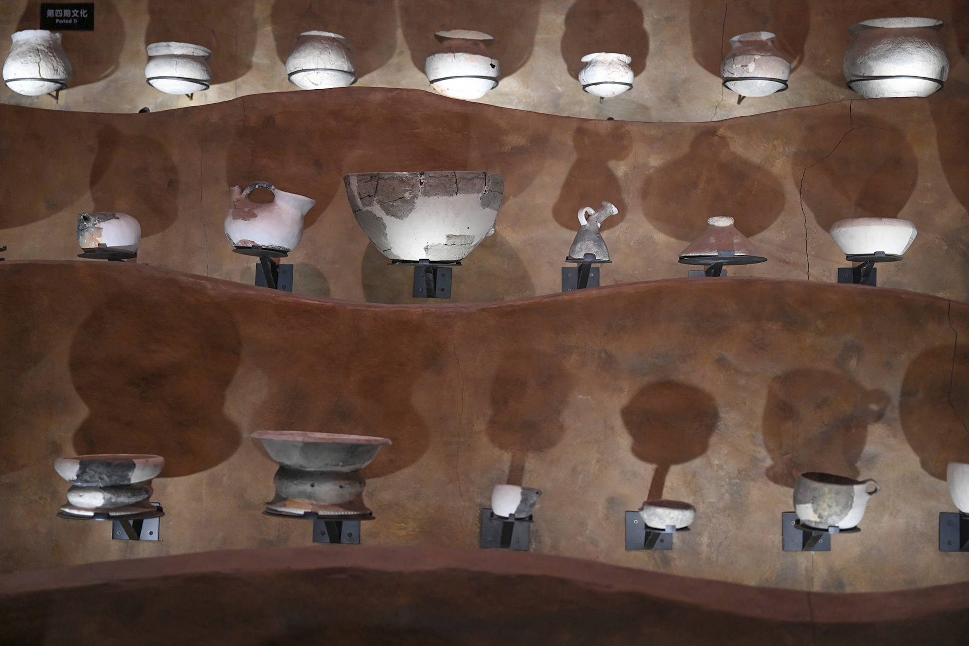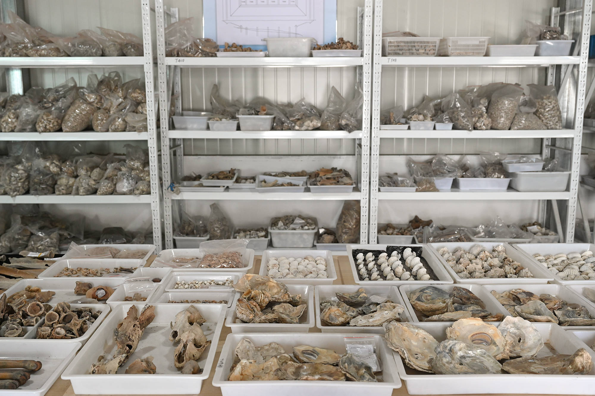 2023年4月1日,宁波余姚市郊。井头山遗址的出土文物陈列。澎湃新闻记者 吴栋 图