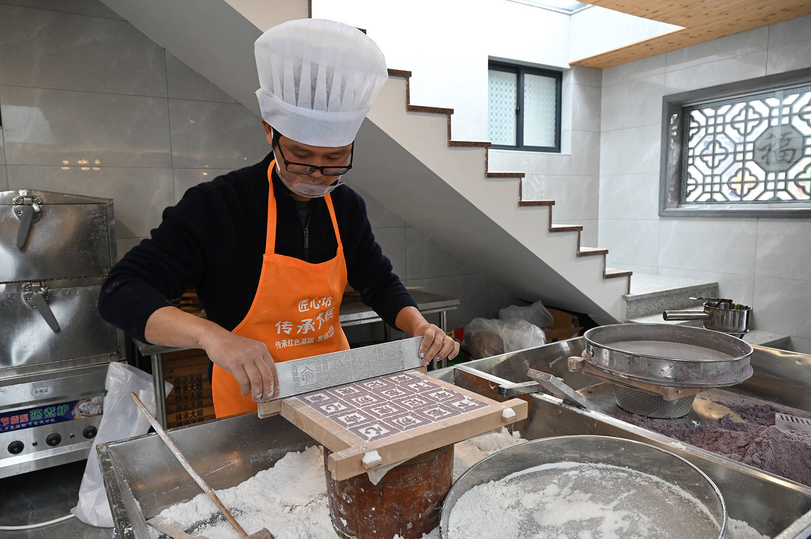 2023年3月31日,宁波余姚市梁弄镇横坎头村。一位正在制作糕点的糕点师,村子传承着“红色文化”。澎湃新闻记者 吴栋 图
