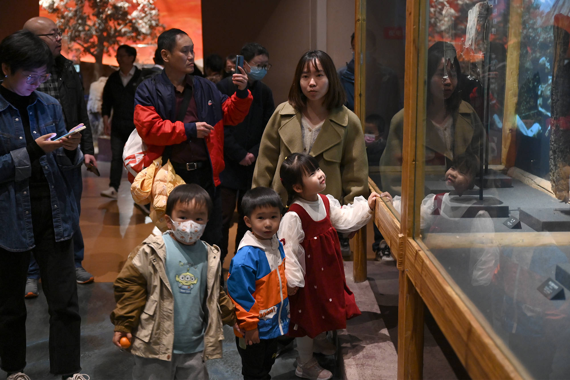 2023年4月1日,宁波余姚市河姆渡遗址公园博物馆。正在参观的人们。澎湃新闻记者 吴栋 图