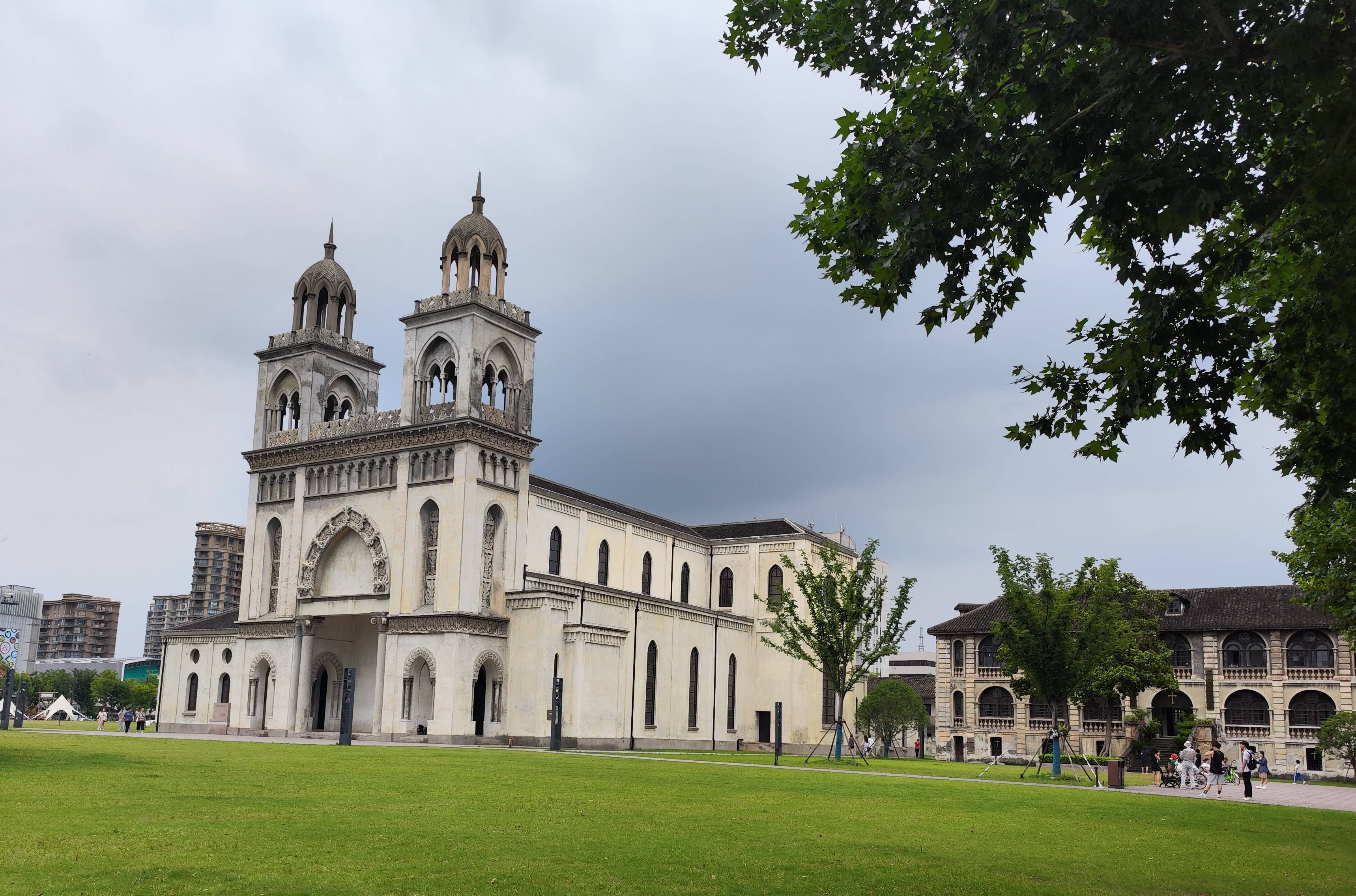 嘉兴是一座美丽的城市,从火车站出来,就被这里的江南水乡风情所吸引。前往嘉兴子城参观,还没下公交,眼前就出现了一片西式教堂建筑,格外引人注目,子城怎么变成了西洋建筑?教堂旁是面积广阔的草坪广场,草地上点缀着一顶顶白色帐篷,在繁华的闹市中,简直就是一道靓丽的风景线。