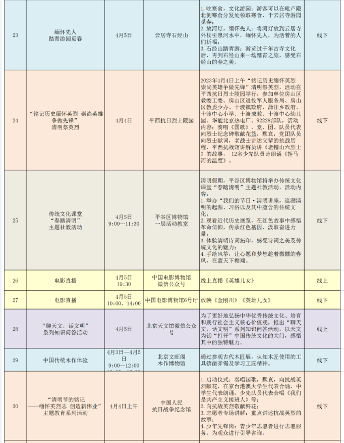 射柳、绘纸鸢,体验清明习俗;以鲜花代门票,缅怀英烈先贤。 清明节期间,北京地区博物馆推出39项展览文化活动,邀市民到博物馆里感受传统,追思先人。