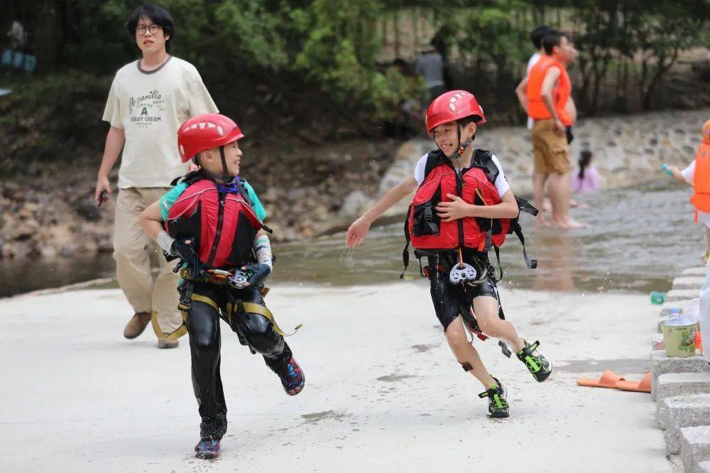 不少游客带着孩子们在溪里