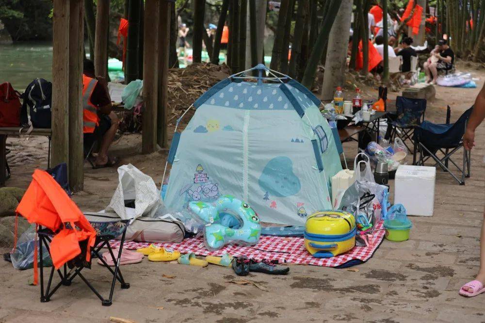 游客们还搭起帐篷