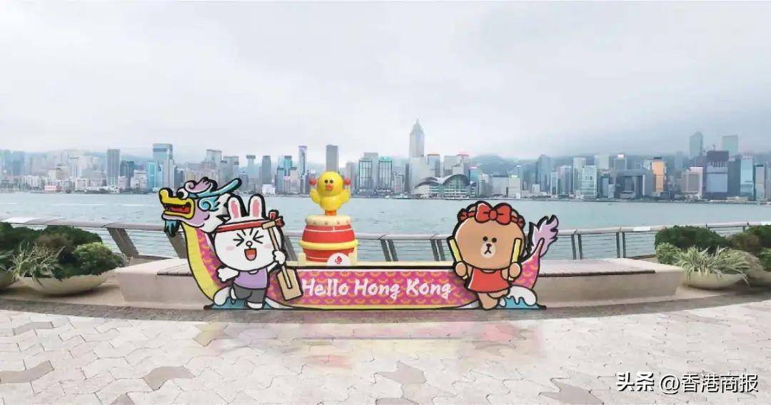 游客除了可以在维港美景前与一群LINEFRIENDS合影外,还可以在位于星光大道的LINEFRIENDS龙舟主题快闪店购买限量纪念品。充满节日气氛。气氛。