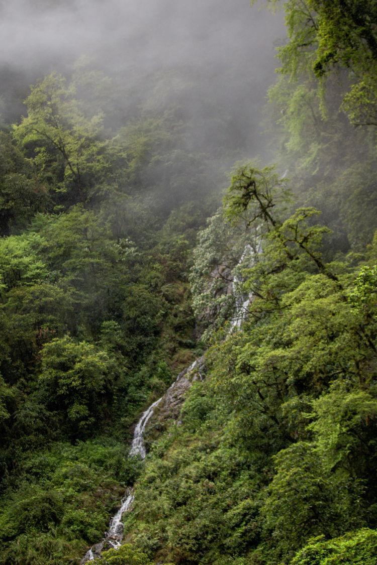 下山后返回波密。一点左右,我再次通过了大坝边检,拿出身份证并当面检查。我们沿着崎岖的山路行驶,一步一步攀登。虽然我们都是原路返回,但风景却不同了。云静,雾气静,山峦雄伟,冰瀑矗立,树影婆娑,美不胜收。
