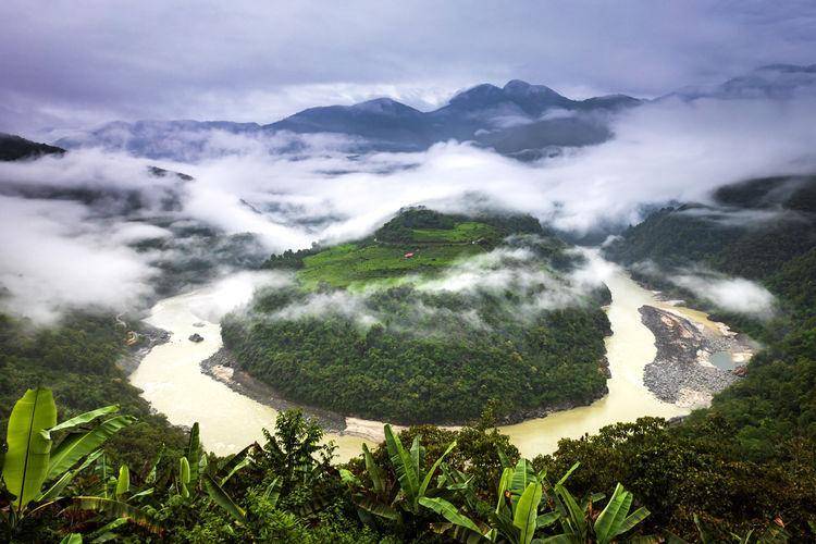 天空乌云密布,山间炊烟袅袅。雨,溅起。由于我不会驾驶无人机,所以我用相机拍摄了延时摄影。眼看八点钟雨就无望停了,云雾也将雅鲁藏布江完全覆盖,决定顺流而下。下山时,押运车车轮滑入路边沟渠中无法脱身。于是一群老老少少开始了自救,他们举不起来,举起者也拿不住。最终他们翻山越岭寻找鹅卵石,重新包装轮胎,终于摆脱了困境。在山脚下吃完早餐后,返回房间休息。