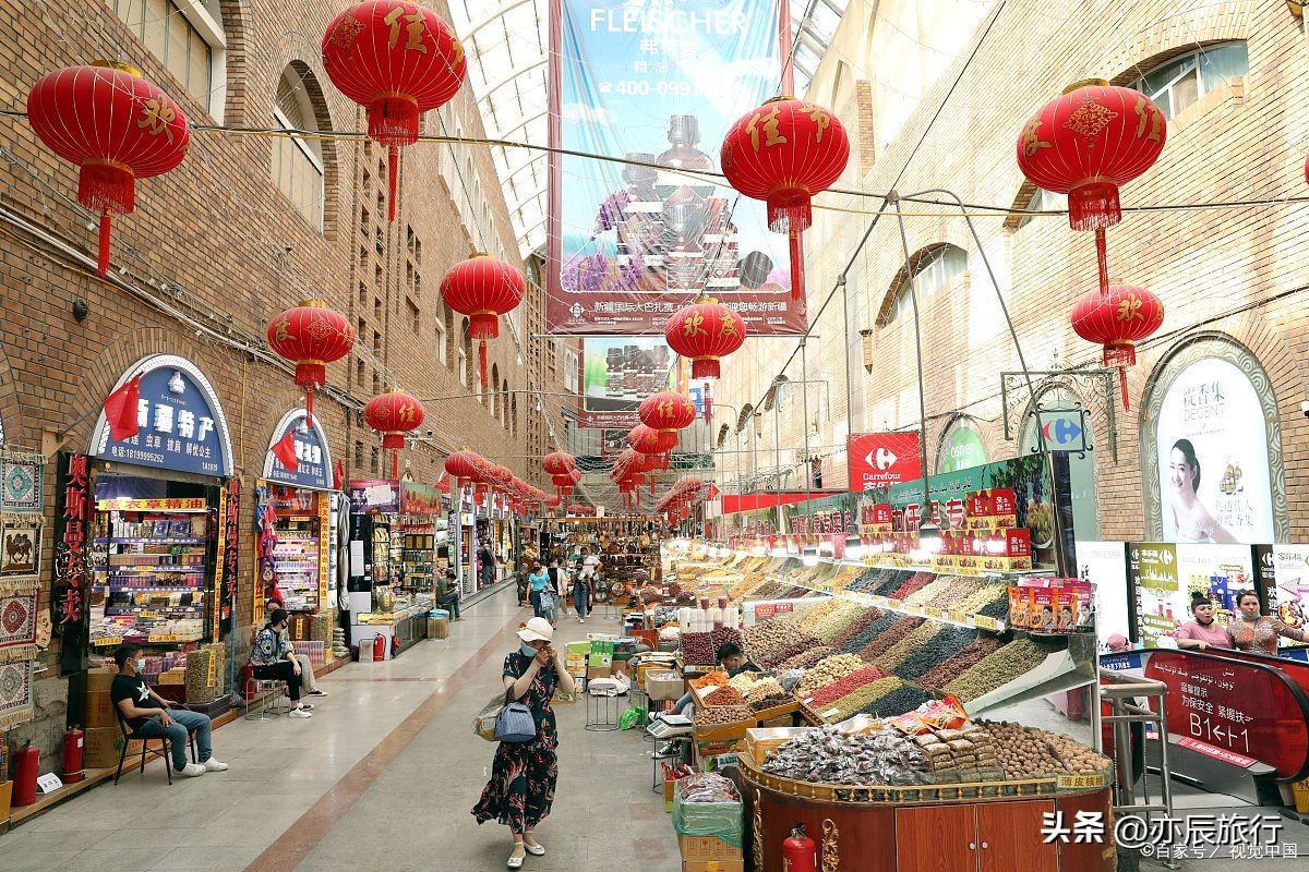 新疆国际大巴扎风景区是乌鲁木齐市的旅游购物区,是新疆最大的综合旅游商务区。特产、手工艺品集中来自新疆各地,游客可以买到各种文化衫、特色饰品、传统乐器等。他们可以购买。此外,风景如画的地区还有各种民族表演和体验项目等待着游客。感受浓郁的民族文化气息。