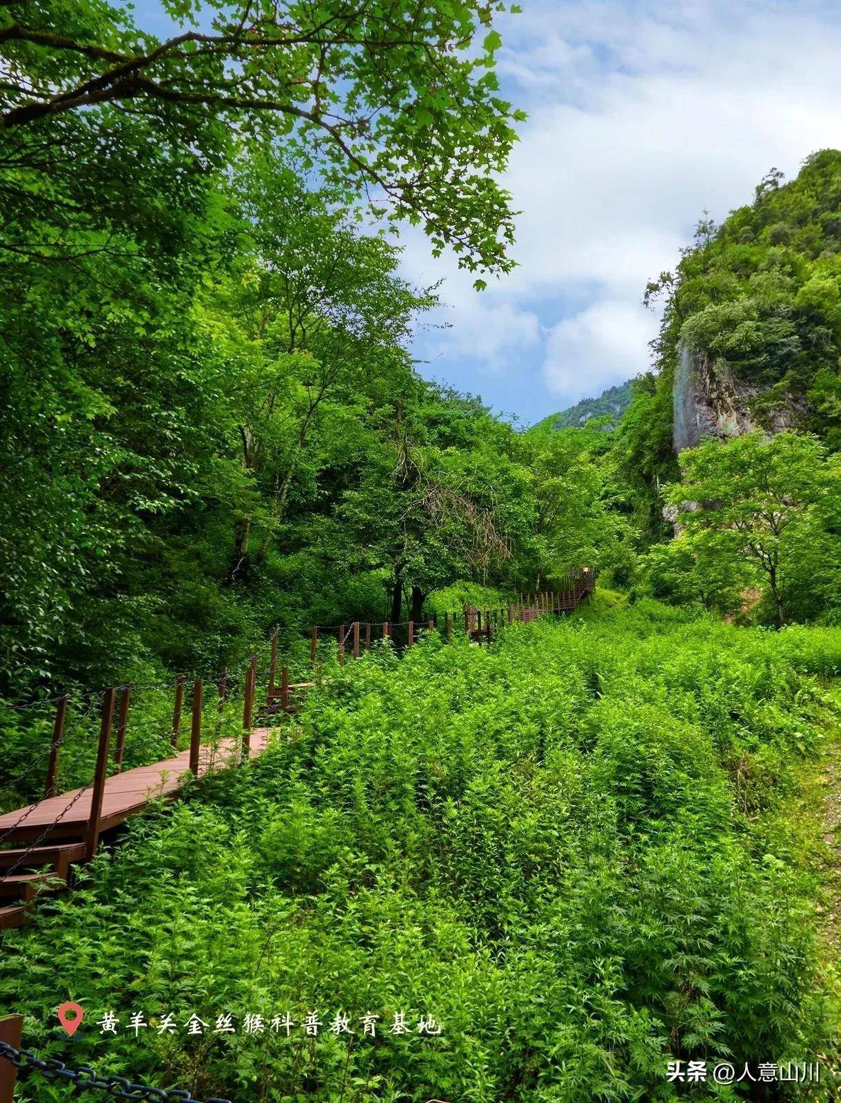 夏季的黄羊关,山青水秀,风景秀丽,古色古香,沿着这条运河的栈道,可以看到一群金丝猴。