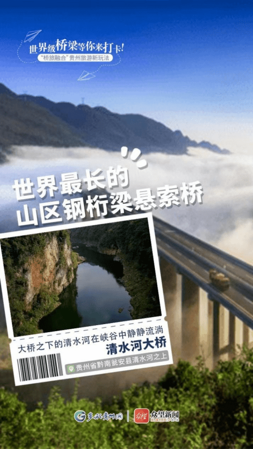 稿件转载来源:【海报】世界级桥梁等你来打卡!“桥旅融合”贵州旅游新玩法 (gog.cn)