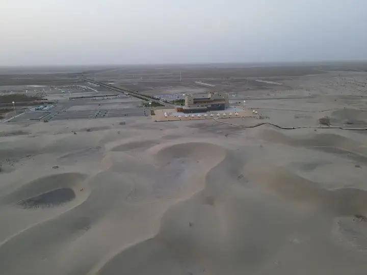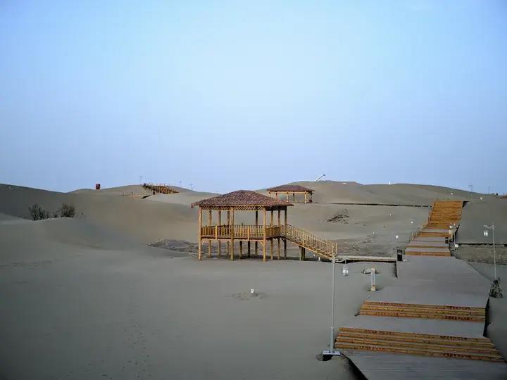 塔克拉玛干沙漠之门观景台距离酒店有40分钟车程。从名字就可以明白,这是一个沙漠风光的地方。