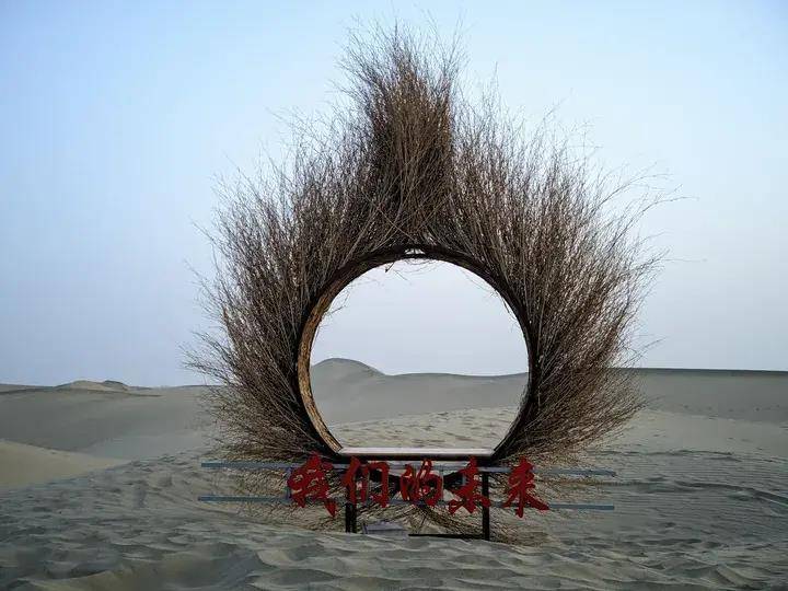 景观中最大的地标之一是停车场旁边的一块大石头,上面写着:这里是塔克拉玛干沙漠。