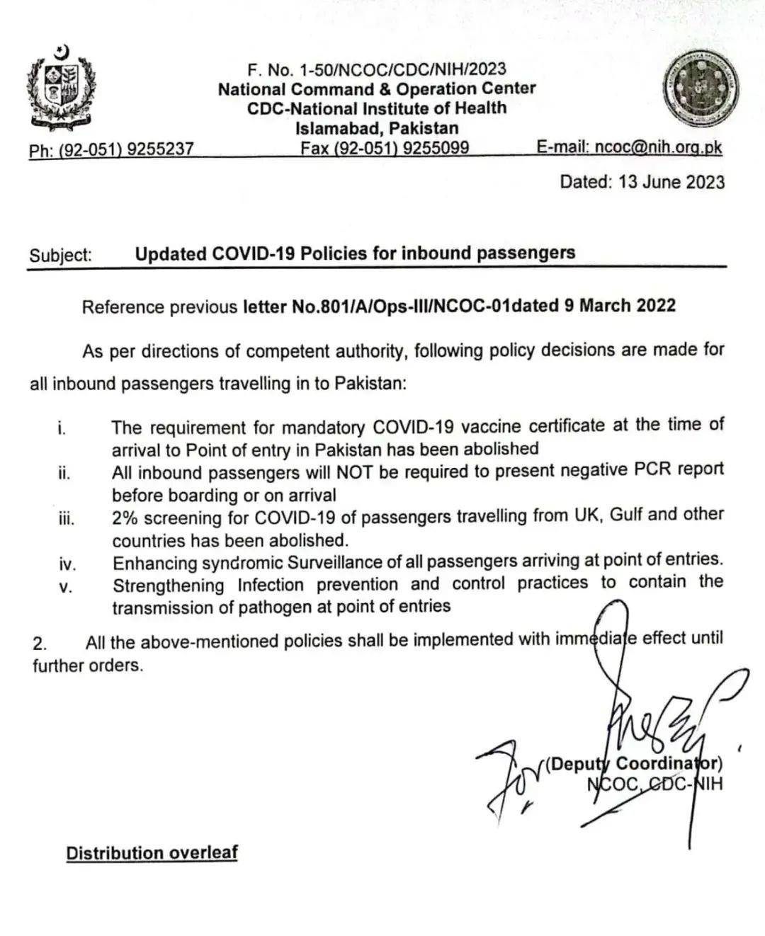 卫生部门详细介绍了针对所有前往巴基斯坦的乘客所做的决定,立即生效: