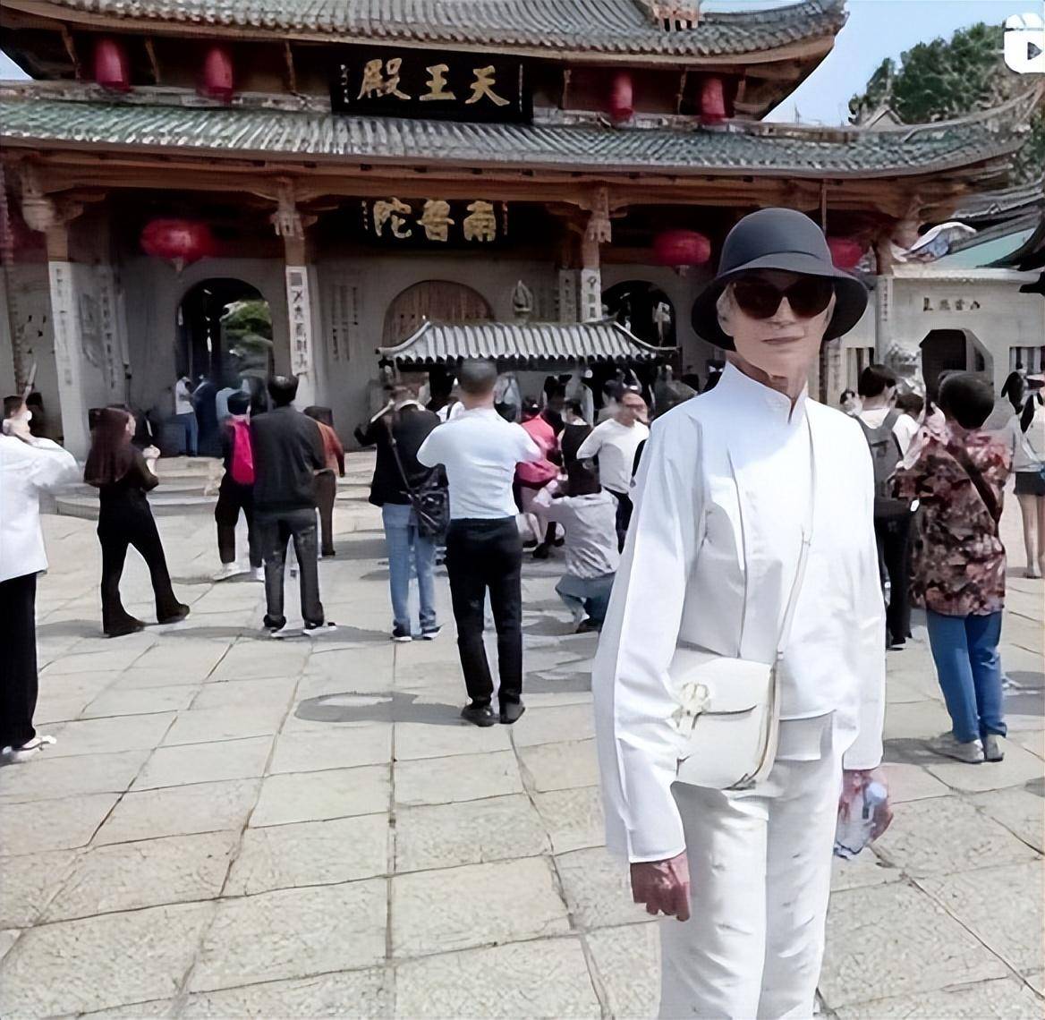 这身白色的造型也是充满着中国风格,干干净净的气质,老太太这次在中国的两周游玩,确实也是顺便宣传了一下大美中国。