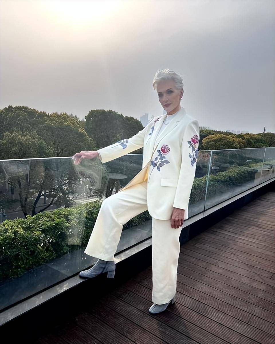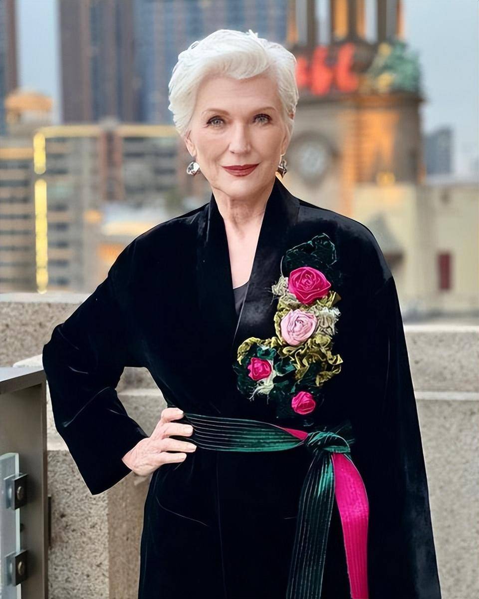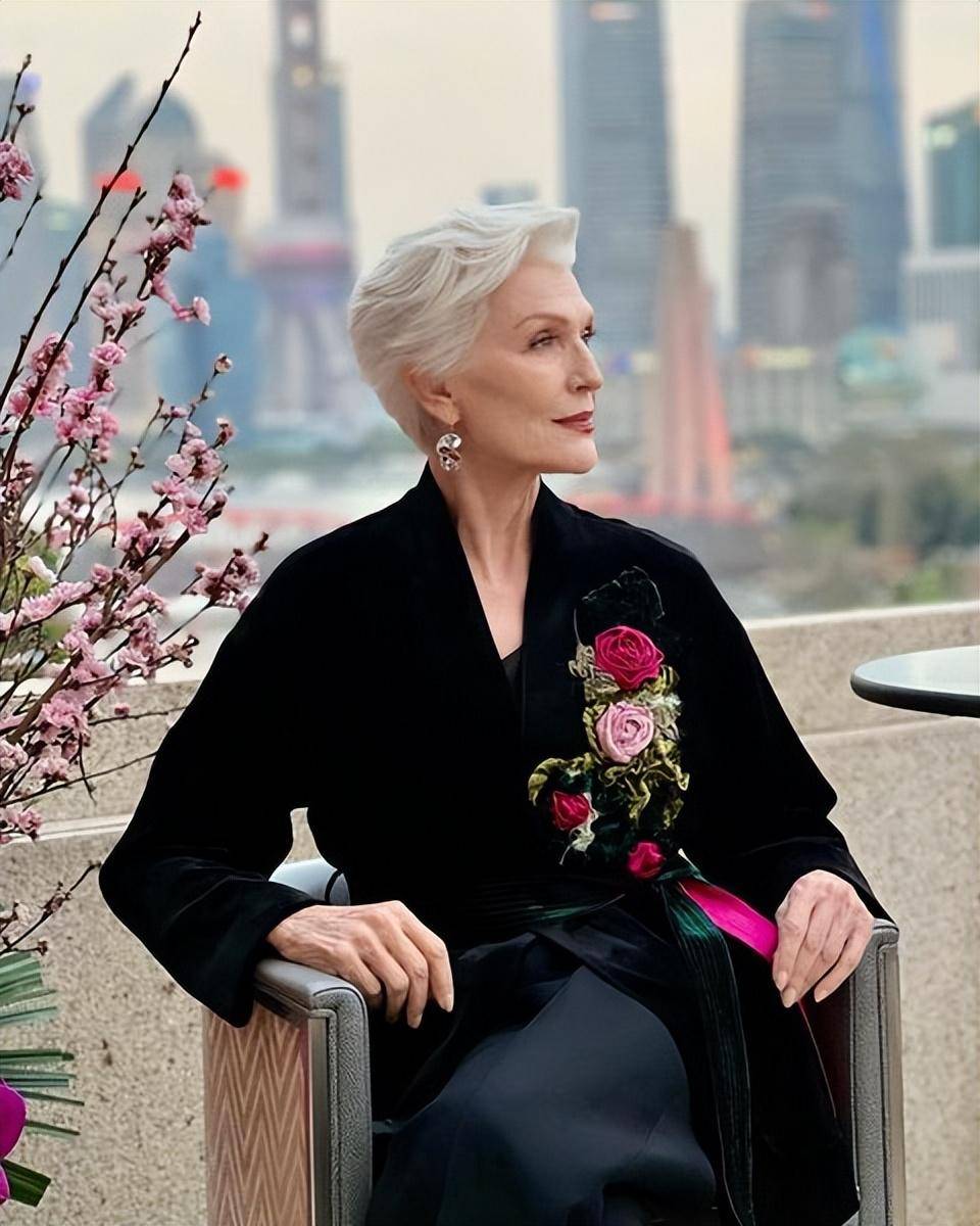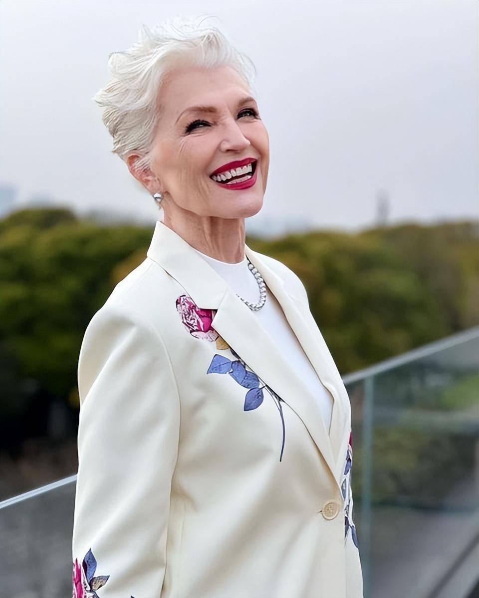 梅耶一头的白发,却如此精致好看,看到梅耶,让我突然明白,岁月的痕迹其实并不会影响气质,而这头白发反而让梅耶美得与众不同。