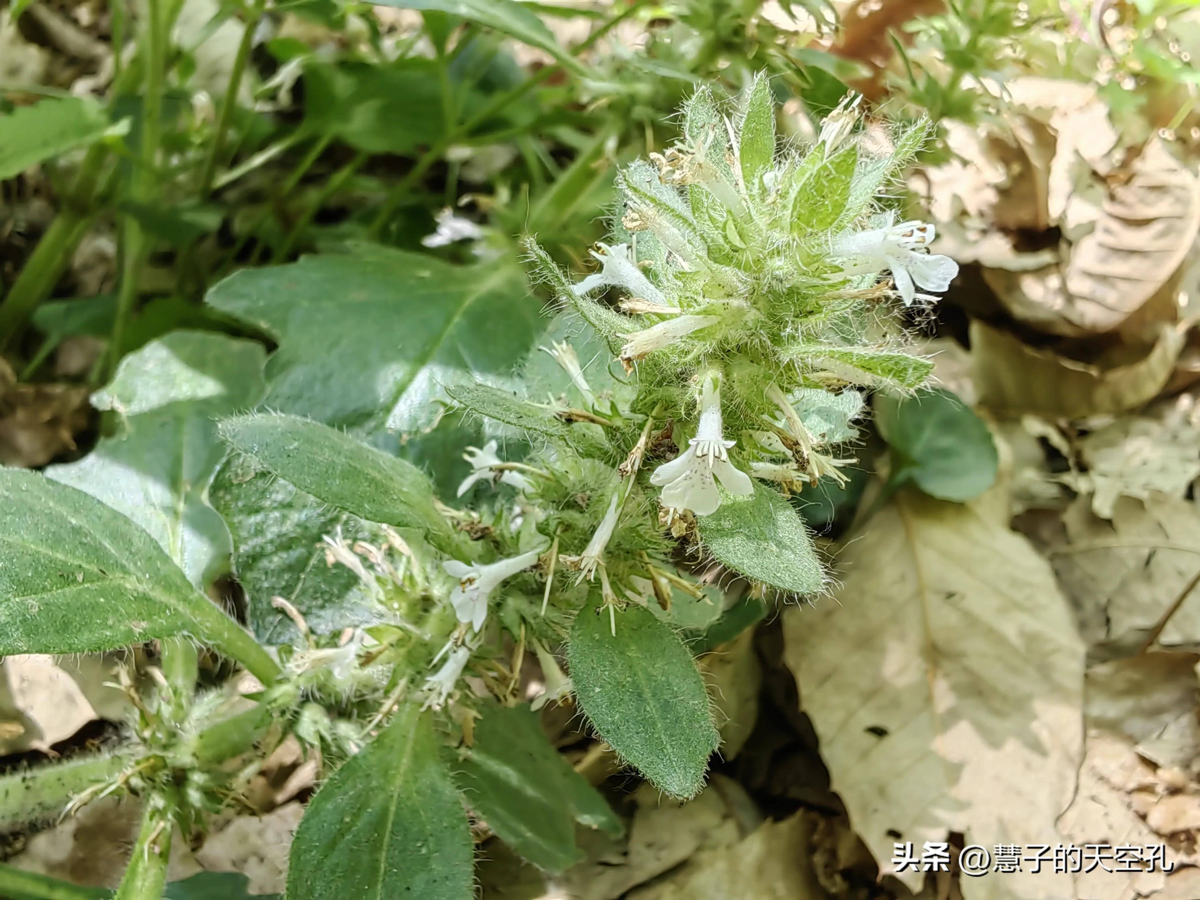 太行山是植物的宝库。沿路的斜坡上随处可见野生地黄和一些不知名的花草。在我看来,地上有一些难看的草在爬行。花茎上长满了圆形的白色花朵,椭圆形的叶子上有白色的细毛。顾名思义,金草是治疗金疮的良药。对筋骨酸痛有奇效,故名“金谷草”,因其叶上有细白毛,又名“白毛夏枯草”。常生长于海拔1400米的溪边、道路、田野及湿润草坡上。它也是农村地区的一种稀有杂草。现在我都后悔没有在家采一些草药了!保护自然环境,不破坏新植物、树木。