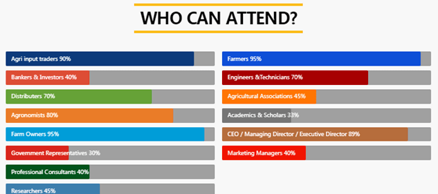 专业贸易观众,包括零售商、批发商、进出口商、贸易买手、农业开发商等,分别来自沙特、科威特、阿联酋、约旦、叙利亚、黎巴嫩、利比亚、突尼斯、阿尔及利亚、土耳其、埃及、西班牙等国家。