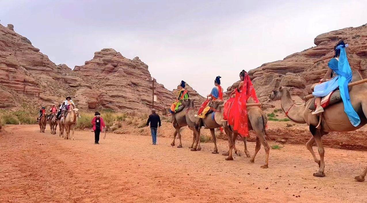 游客在平山湖大峡谷骑骆驼(甘州区委宣传部 供图)