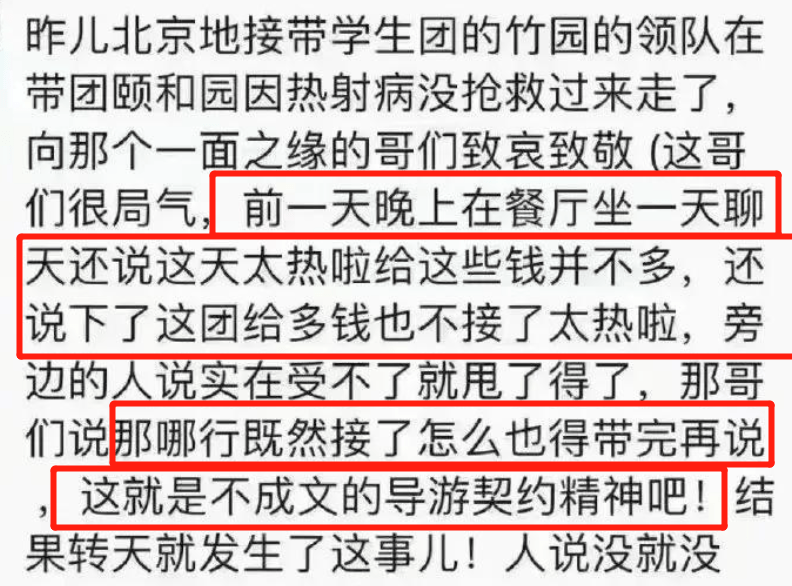 值得一提的是,其实龚哥早先就觉得天气太热,他在去世前曾告诉同事,自己带完这一个团就不带了,因为太热。