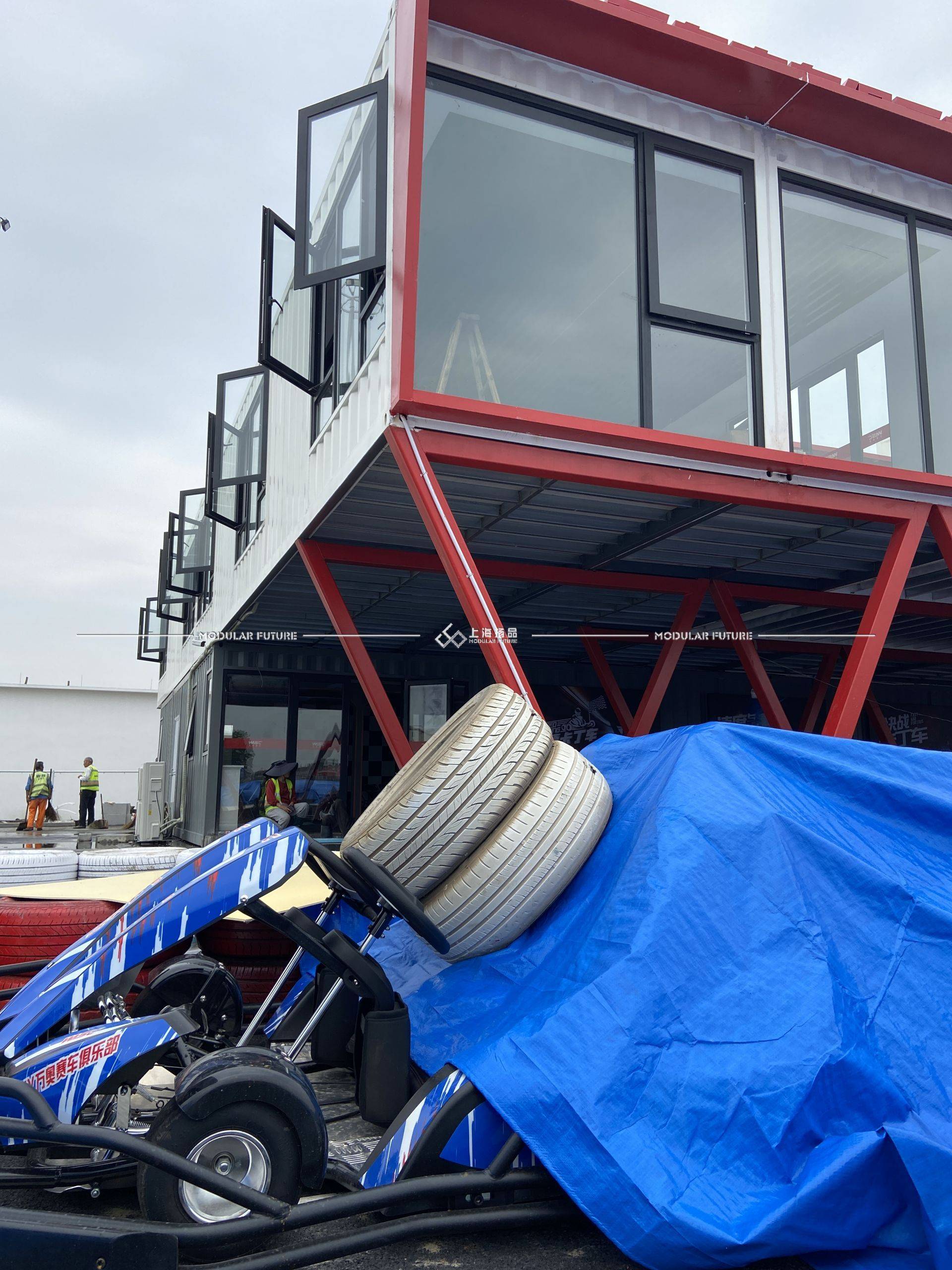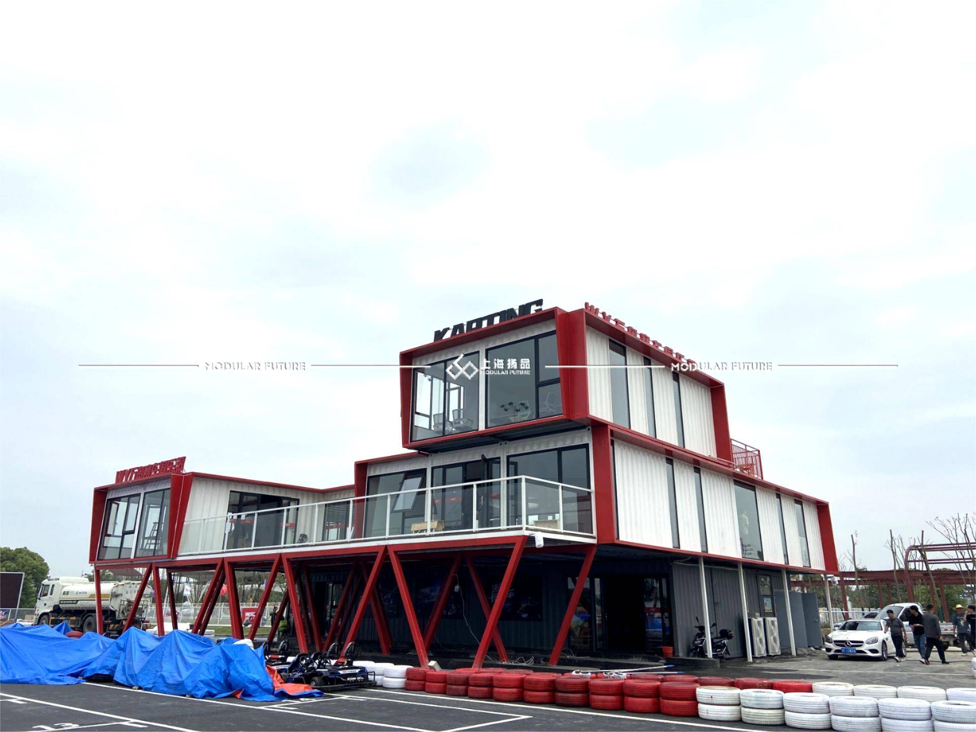 同时,集装箱的组合和堆叠创造了无限的空间想象。卡丁车俱乐部可以根据场地需求进行定制化设计,自由组合集装箱创造出不同大小的空间。