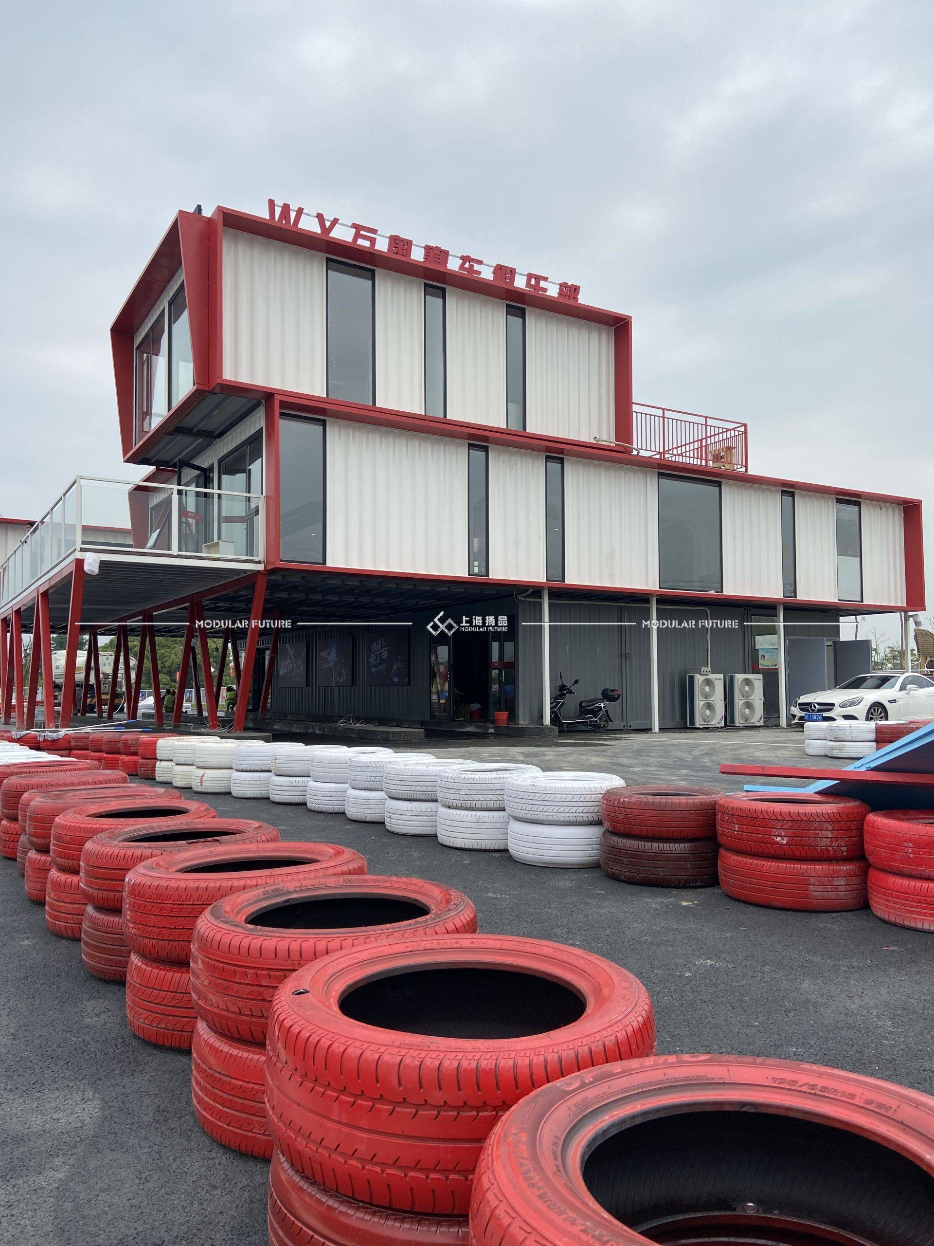 集装箱卡丁车俱乐部以其鲜明的外观设计吸引了众多年轻人的目光。通过将集装箱进行组合和堆叠,俱乐部的外观呈现出别具一格的现代工业风格,给人一种时尚、前卫的感觉。集装箱的坚固结构和金属质感为俱乐部增添了独特的魅力,成为吸引人们前来打卡的重要因素。