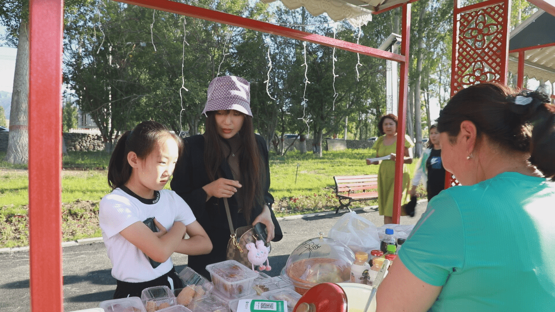 额敏县喀拉也木勒镇阿克阔麦村村民马合巴勒·卡得尔别克说:“包尔萨克、饼干、菜盒子都是亲手做的,差不多卖完了,一天挣了800多。”