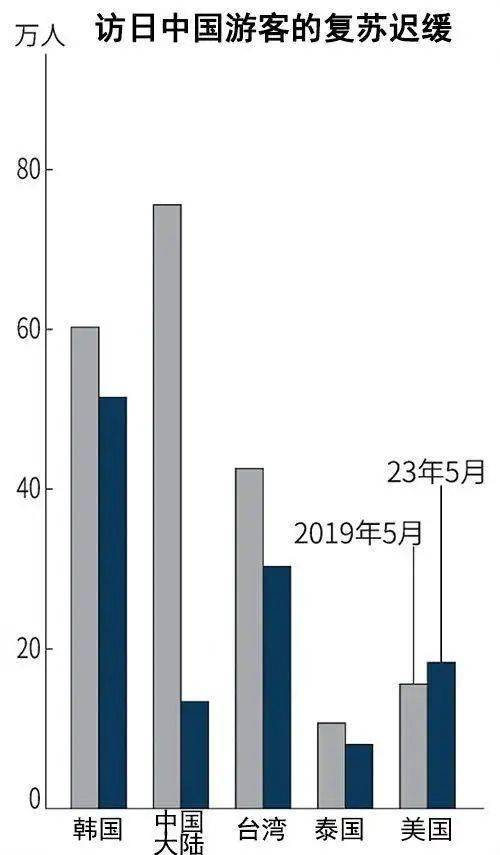 “虽然中国航线仍有待恢复,但欧美等其他地区和日本国内的旅客需求正在稳步复苏”,全日空(ANA)和日本航空(JAL)的经营首脑一致认为。日本国家旅游局(JNTO)的统计显示,5月来自中国的访日游客人数与疫情前的2019年同月相比减少82%,仅为13.4万人。全部地区的访日游客恢复至约7成水平,美国超过疫情前水平。中国的入境措施尚未正常化,中国游客的复苏尤为迟缓。