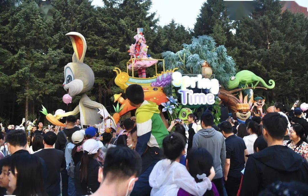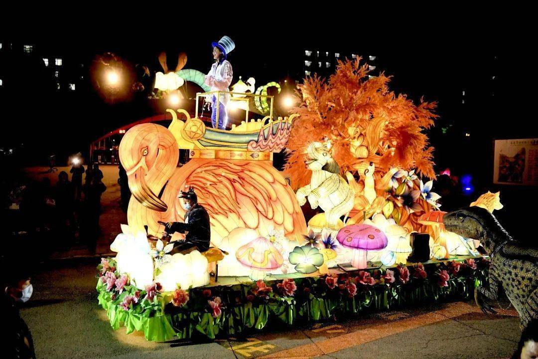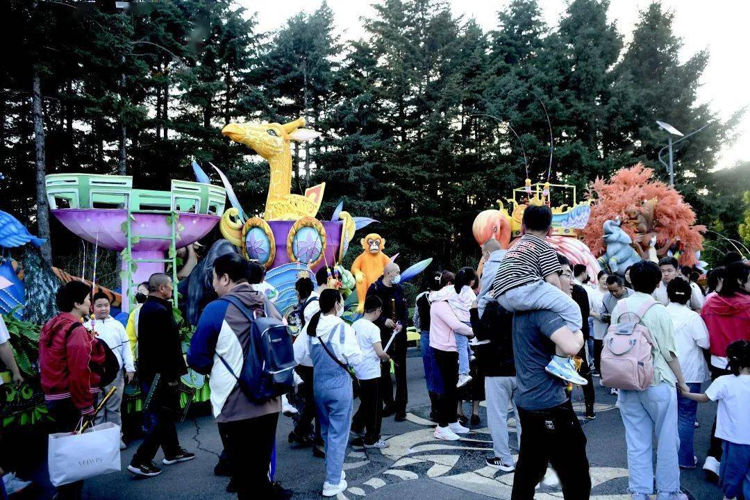 主打夜场体验的 梦幻仙境花车巡游(19:00开始) 结合西游元素与卡通动物元素,推出了东北虎、火烈鸟、吉祥兔三大主题花车,既有西游的韵味,也不忘动植物园的经营主业,开启了夜游2.0版本。