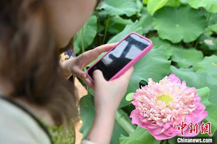 经过选种和培育,广州番禺莲花山各色莲荷迎来了盛花期。莲花山“莲花仙境”大小池塘中,粉红色、淡黄色、白色等色彩的莲荷惊艳绽放。不少市民拿起相机捕捉莲荷倩影。其中,引种自湖北武汉的荷花品种“惊鸿”,花色红艳瑰丽,花态圆润丰盈,更是成为人们竞相拍摄的对象。