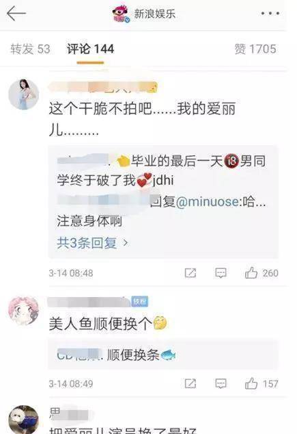 不少网友表示,换个人演美人鱼就好了,也有人直接表示:干脆别拍了。