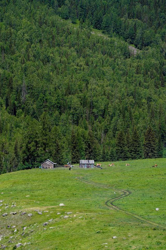 在喀纳斯,见到最多的动物就是牛,这里有独自吃草的牛,有带着宝宝散步的牛,有成群结队过桥的牛,总之即使是坐车在路上也肯定不会无聊,有看不完的牛。有尼克尔 Z 70-180mm f/2.8长焦镜头的好处是什么,就是可以站在原地去拍摄远处的牛,不用浪费体力走过去,同时也可以展现让画面具备空间压缩感的构图。
