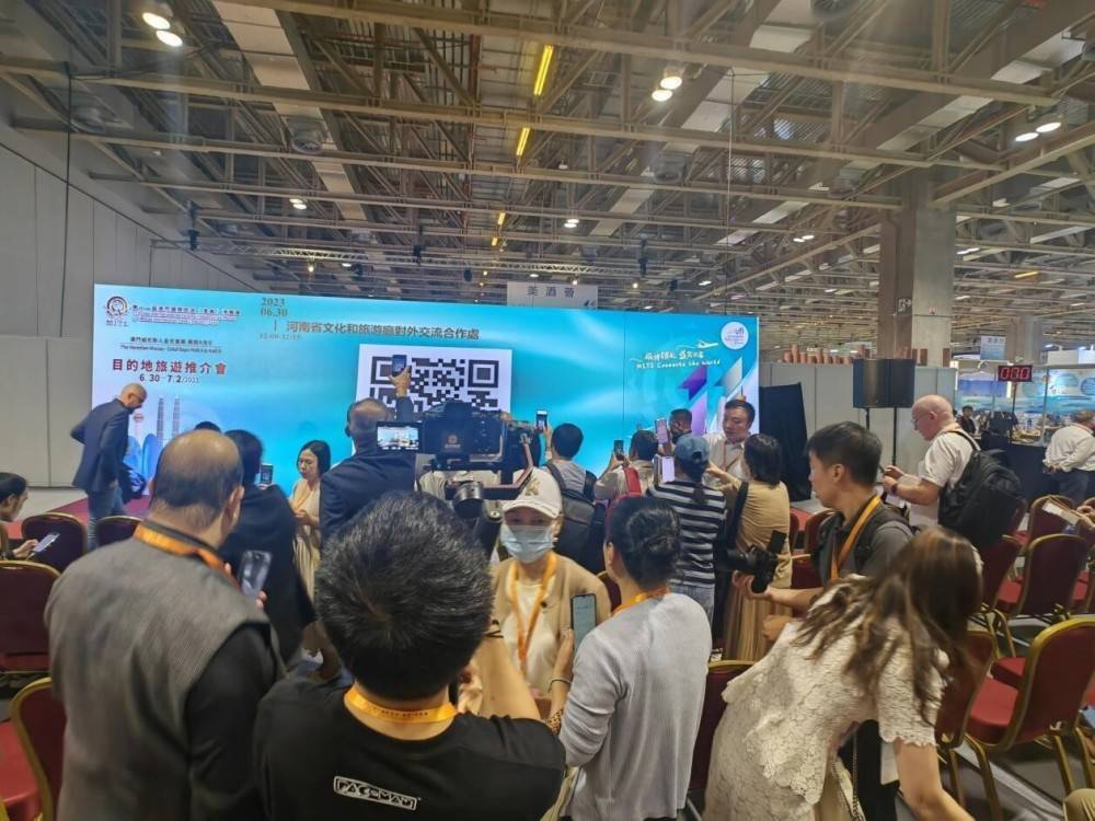 旅博会期间,“行走河南·读懂中国”2023澳门推介会顺利举办,河南推介官以研学游和古都游为主线,重点解读了“老家河南、天下黄河、华夏古都、中国功夫”等围绕中华文化超级IP设计的游学精品线路及课程,旨在传达“研有所值、学有所思、旅有所乐、行有所获”的研学旅游思想,助力“用旅游的方式传播中原文化”成为可能,有力推动提升了“行走河南·读懂中国”品牌的知名度和影响力,吸引不少海内外旅行商的光顾。现场还送出景区门票、精美文创产品、河南特色小吃等文旅大礼包,诚邀澳门游客赴豫旅游。