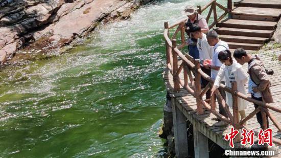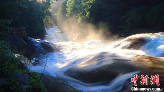 近日,位于陕西省宝鸡市太白县内秦岭深处的黄柏塬原生态风景区绿树成荫、“凉”意十足,依托高海拔的地理优势以及依山傍水的自然生态环境,这里夏天平均气温仅有19℃。不少游客前来避暑消夏、登山戏水,欣赏自然风光。图为秦岭深处的夏日风光。黄柏塬原生态风景区供图