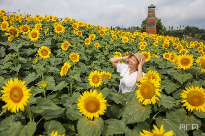 游客在施秉县牛大场镇牛大场村药谷花圃基地拍照游玩(央广网发 磨桂宾 摄)