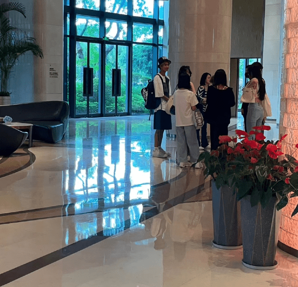 小S带着3个女儿,还有自己的婆婆和老公以一起现身,身边还有另外一男一女两个年轻人,不知道是不是她的助理。一行人在入住酒店的时候被网友偶遇,于是发到网上。