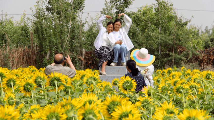 市民王欢说:“我是专程从市区过来,15分钟就到了,听说这里的向日葵花海很漂亮,就带着孩子一起来拍照打卡。”