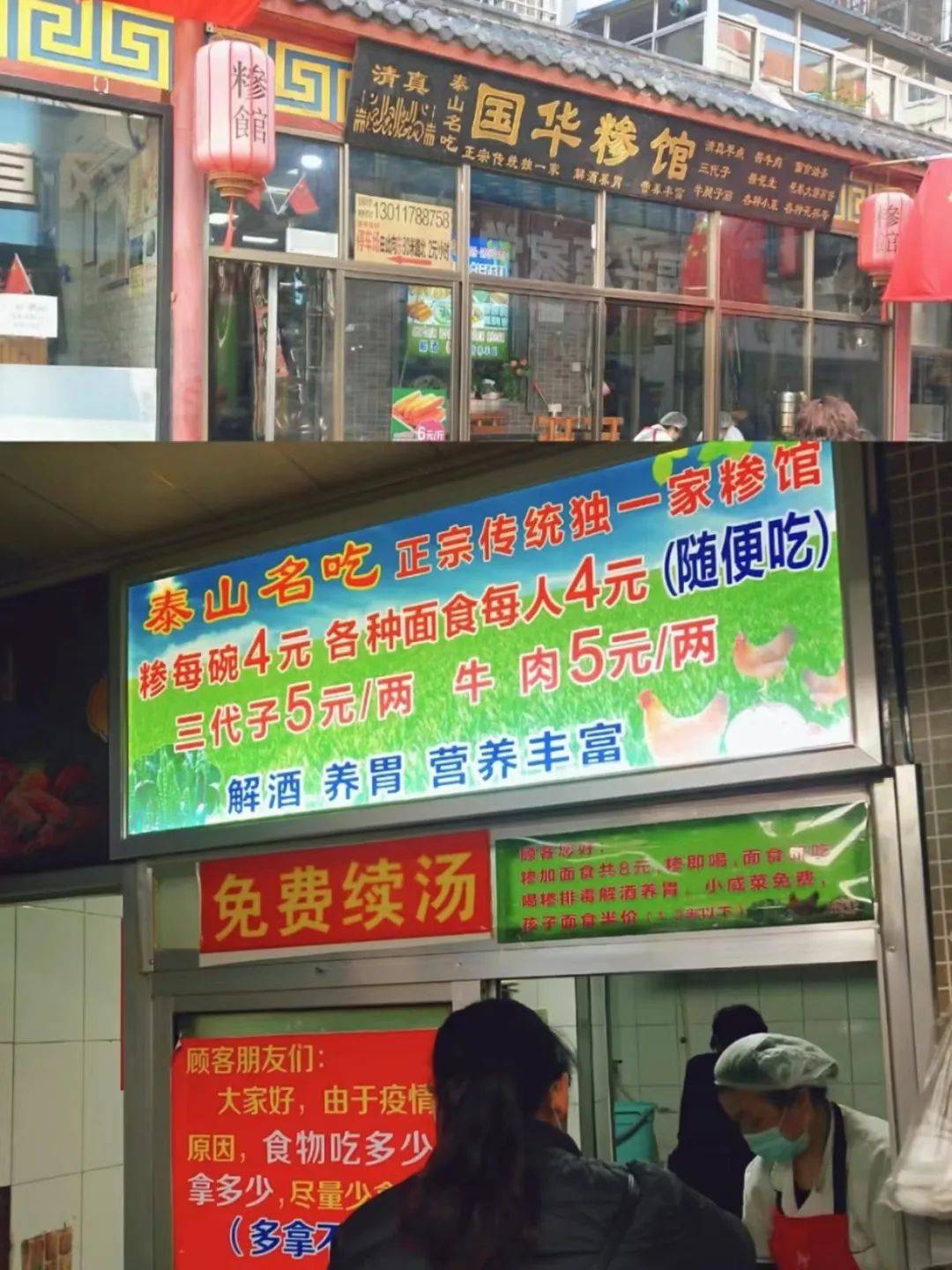 国华糁馆,位于老县衙,距离岱庙非常近。泰安人都喜欢喝的糁,糁汤很好喝,搭配油条面饼、小咸菜,可以再配上牛肉牛筋、三代子这类小菜。如果你是夜爬泰山下来,过来吃一顿,肚子暖暖的;如果你是爬山前吃一顿,也非常扛饿。