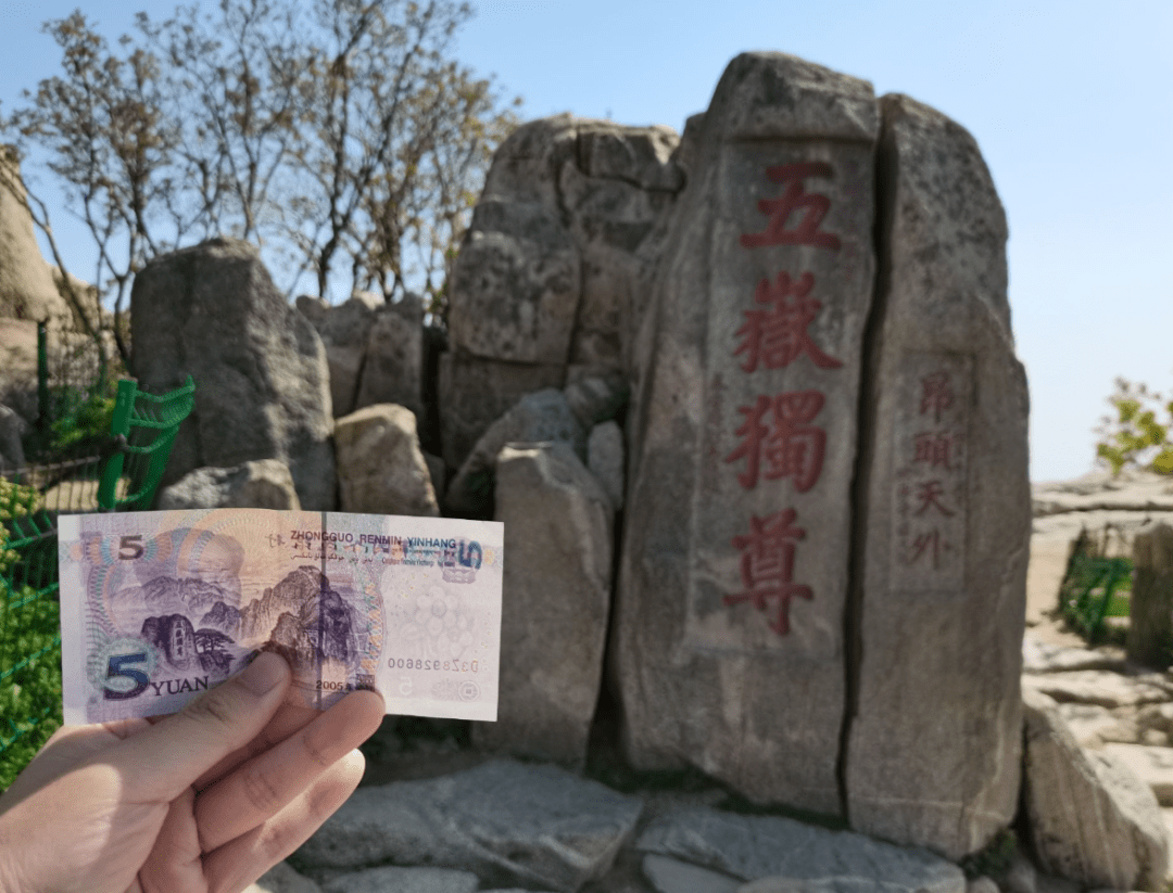泰山的形象还出现在货币的使用中,今天的五元人民币的背面图片就是泰山“五岳独尊”之景,“五岳独尊”的地位,也揭示了华夏文明的重要源头。