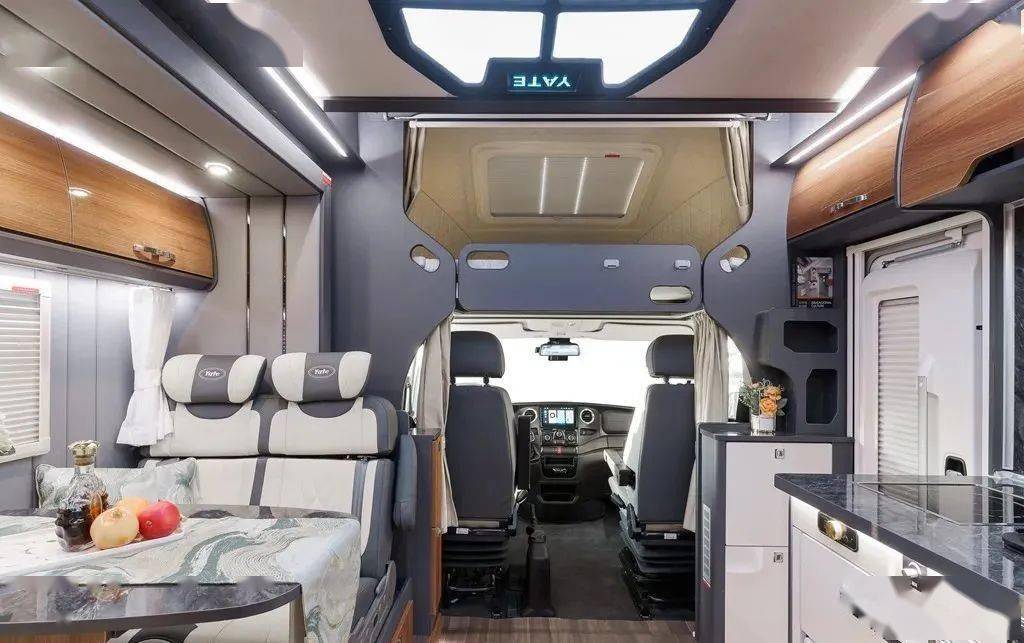 亚特尊领ST PRO双拓展房车,左、后两个拓展仓,完全拓展之后车内居住面积可以达到13.63平方米。车内灰白相间的配色设计,精致舒适的软包、环保组合家具,再搭配上房车专用环保地板革,高档的百褶布艺窗帘和床帘,变温可调式氛围灯和主照明一照,这样的旅途氛围让人感觉十分惬意。