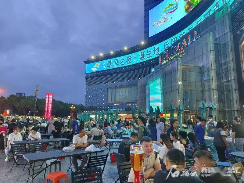 6月28日晚,在乌鲁木齐市天山区CCMALL“时代之夜”夜市,不少市民正在和好友聊天品美食。石榴云/新疆日报记者黑宏伟摄