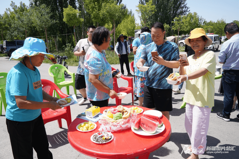 西瓜、糕点、抓饭……大家围坐一桌品尝美食、欣赏歌舞表演。“新疆人太好客了,这么多美食这么热情的歌舞,来到这儿心情非常愉快。以后不仅我要经常来,还会邀请朋友一起来。”来自江西省上饶市的游客张红萍和家人们一到龙潭湖房车营地,就赶上这场活动。她翻看着阿克苏市文旅局干部送来的旅游宣传册,说一定要在阿克苏多停留几天,进行深度游。
